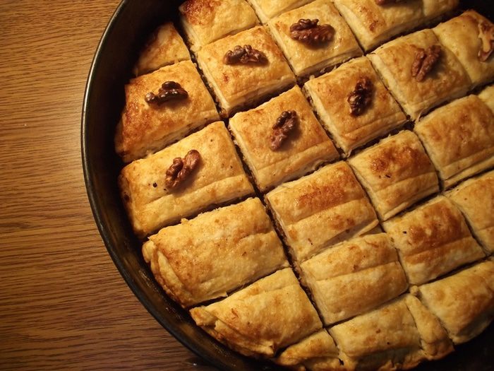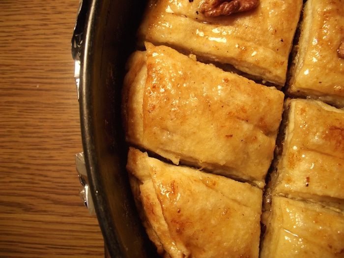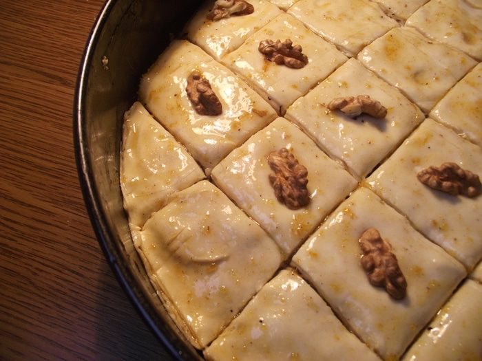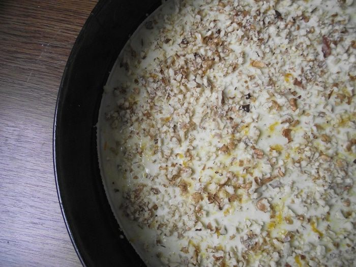 Топим 200 г маргарина (масла) в кастрюльке, добавляем сахар, корицу, цедру. Доводим до полного растворения сахара. Я использовала корицу в палочке, измельчила ее в кофемолке, аромат того стоит. Взяла 2 палочки. Орехи мелко порубить ножом и перемешать с сахаром.
