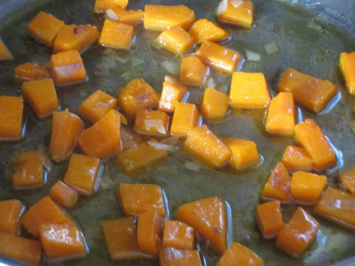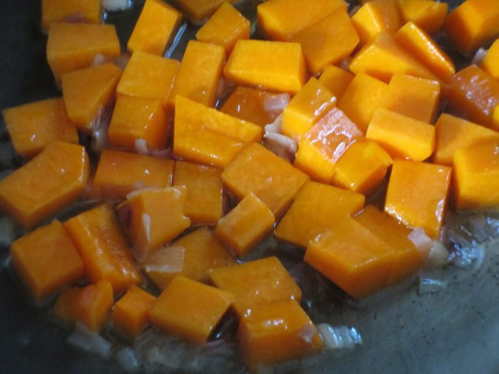 Добавить тыквy и готовить 3-4 минуты.