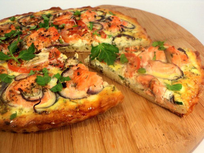Приготовим тесто для пиццы: в теплую воду добавить сахар, соль, яйцо, дрожжи и немного взбить венчиком. Затем добавить постепенно муку, оливковое масло и замесить мягкое тесто. Тесто скатать в ком, накрыть полотенцем и поставить в теплое место для подъема на 1 час. Этого количества теста хватит на 2 пиццы Ф-26 см.