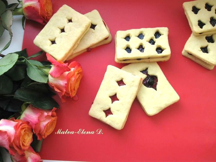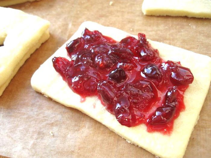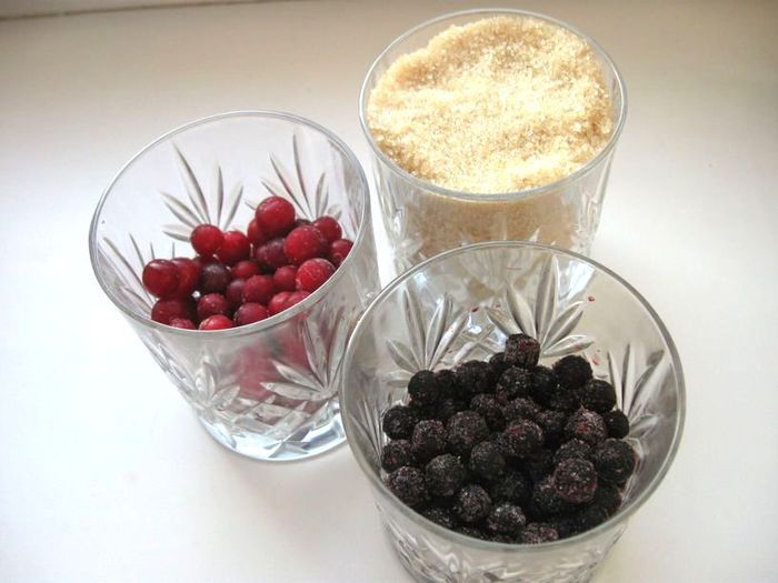 Вынуть, подождать до остывания. Тем временем приготовить «быстрое» варенье: чернику смешать с половиной указанного количества сахарного песка, так же поступить с клюквой, варить на маленьком огне в разных кастрюльках, помешивая, минут 20. Остудить 5 минут, затем снова поставить на огонь и варить, помешивая, 5 минут.