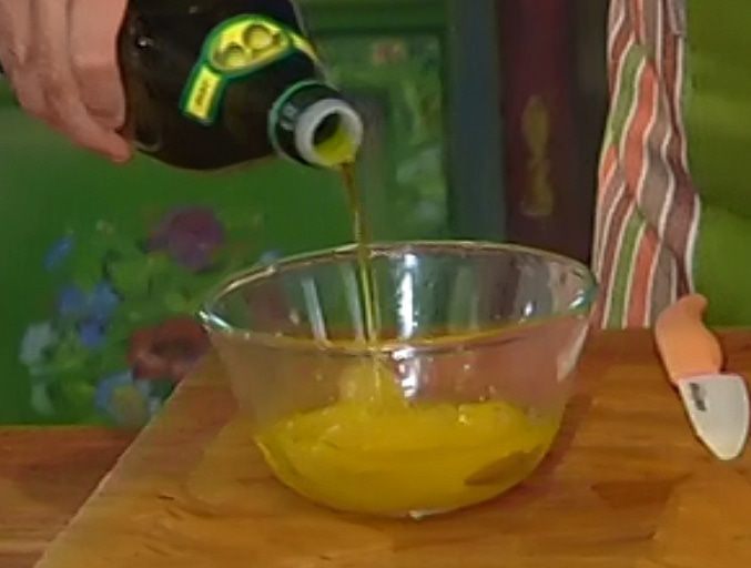 К апельсиновой мякоти с соком влить 1 ст. ложку оливкового масла.