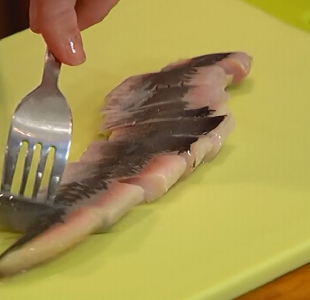 Филе сельди нарезать небольшими кусочками.