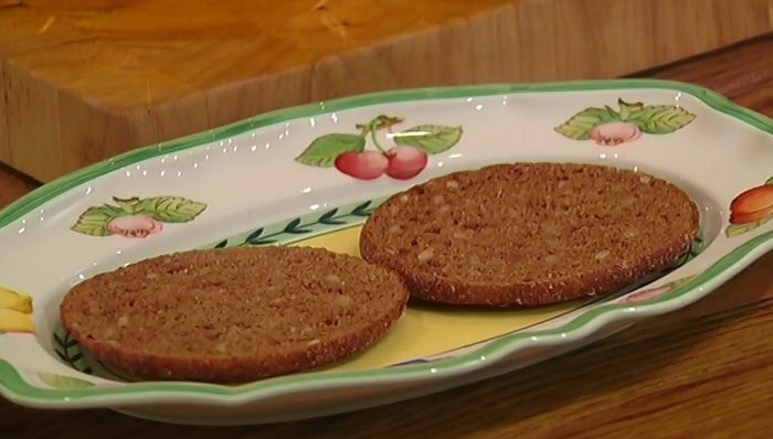 Ржаной хлеб подсушить в тостере.