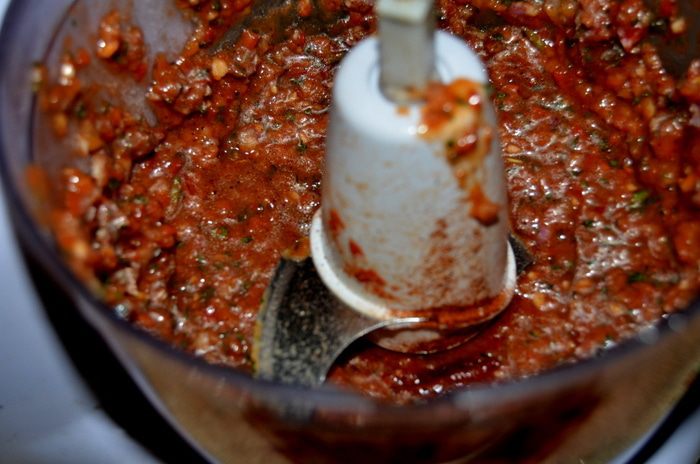 В фудпроцессоре порубим все перечисленные овощи в несколько приемов, но чтоб были кусочками, не пюре.