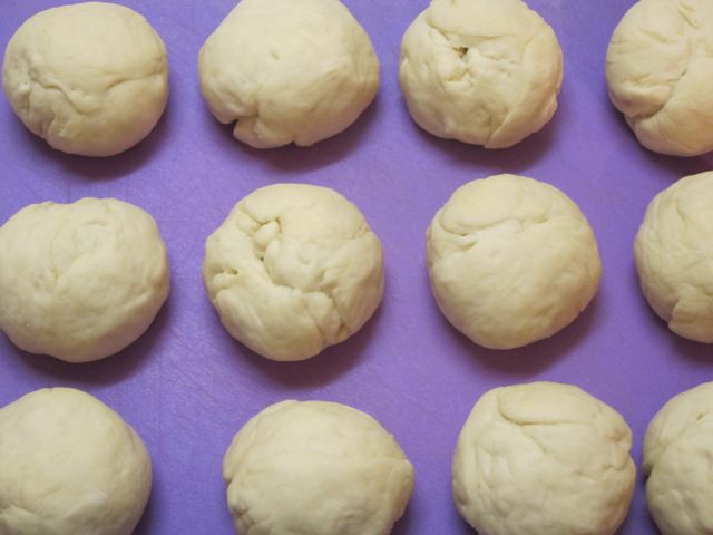Разделить тесто на 12 частей. Скатать в шарики.