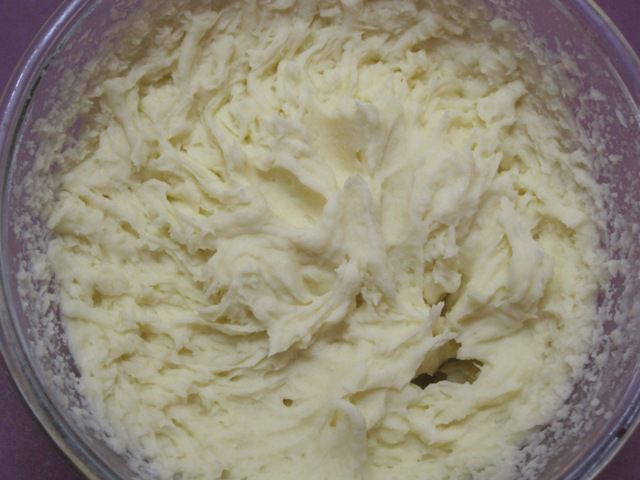Влить 40 мл молока, может, и больше, добавить 1 столовую ложку сливочного масла, посолить. Хорошо перемешать. Я всегда взбиваю пюре миксером. Картофельная начинка готова.