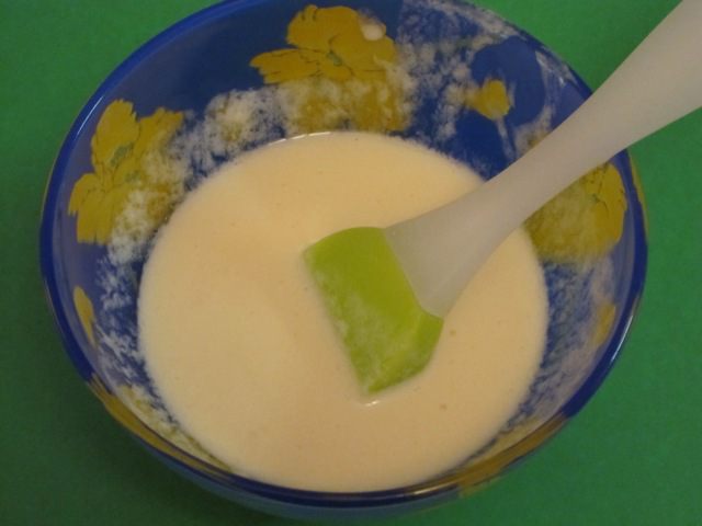 Влить 310 мл тёплого молока.