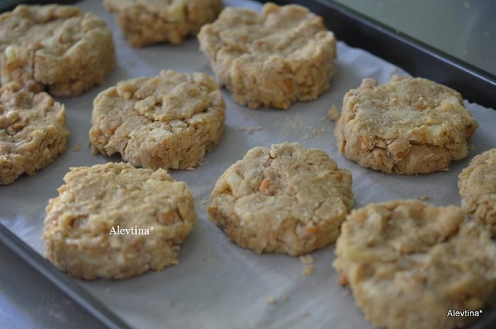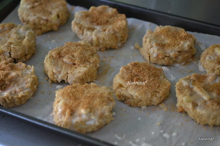 Противень застелем бумагой для выпечки. Осторожно выкладываем, я использовала круглую форму для вырезания. Можно выкладывать столовой ложкой и разровнять.