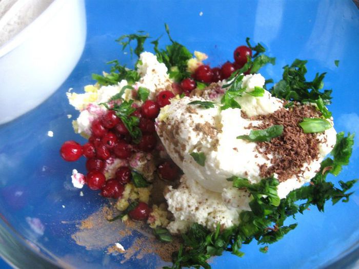 Приготовить рикотту. Молоко с солью поставить на средний огонь, периодически помешивать, чтобы не пригорело. Довести до температуры 82- 88С, но не кипятить. Если нет термометра, то до появления первых пузырьков. Снять с огня. Влить лимонный сок, перемешать. Сразу начнут образовываться хлопья, дать постоять 5 минут, больше не мешать, откинуть на дуршлаг и застеленный 2 слоями марли. Дать сыворотке отделиться 10-15 минут, немного отжать. Снять марлю и убрать в холодильник после полного остывания до использования.