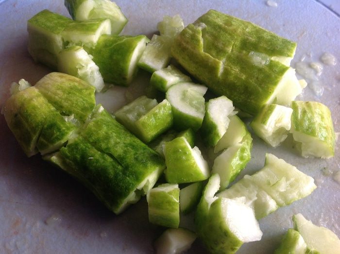 Огурцы отбейте тыльной стороной ножа, нарежьте на брусочки.