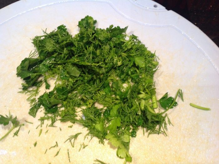 Зелень мелко нарезать.