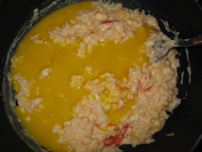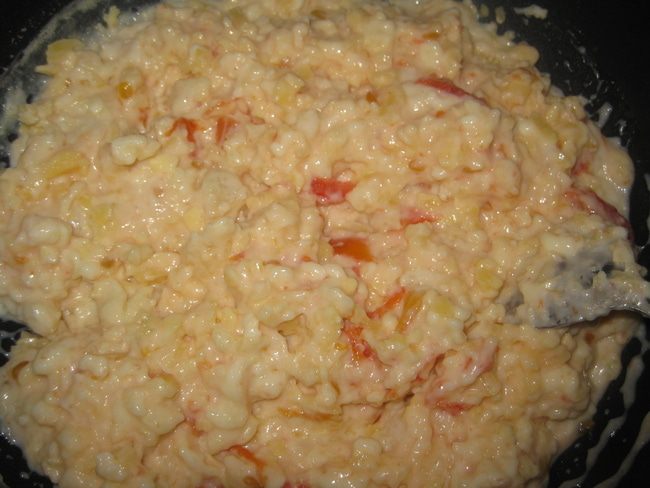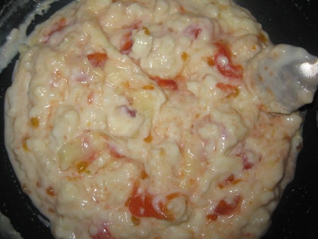 Добавить измельченный консервированый помидор или мелко порезаные свежий.