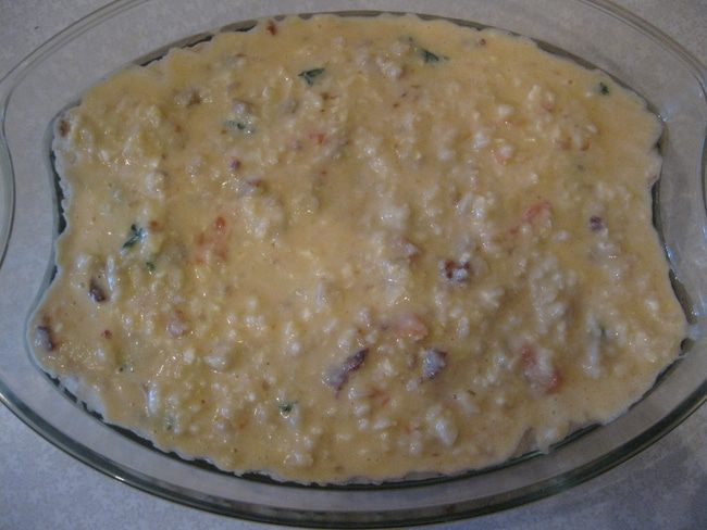 Форму смазать маслом и вылить в нее массу. У меня большая овальная форма, объемом 2,95 л. Выпекать пирог в духовке до образования золотистой корочки, около 20 минут.