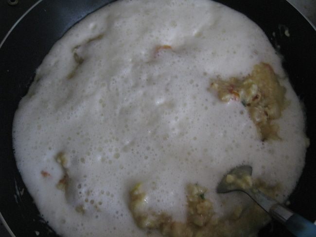 Развести молоком, проварить соус 5-7 минут, перемешивая. Слегка охладить.