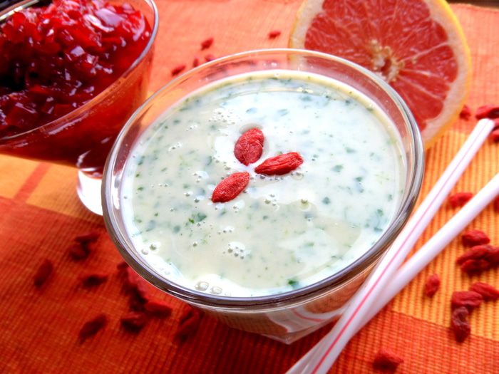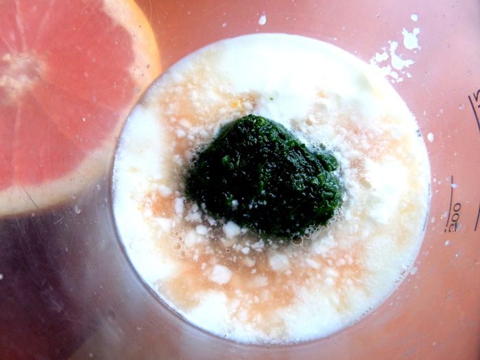 С наступлением тепла хочется освежающего питья! Я давно не выставляла напитки,пора взяться за это дело))), ...да и Лали,повторив все мои предыдущие коктейли,ждёт новых)))) Сегодня у меня облепиха с грейпфрутом на кисломолочной основе!!!! И опять же шпинат...полезно!