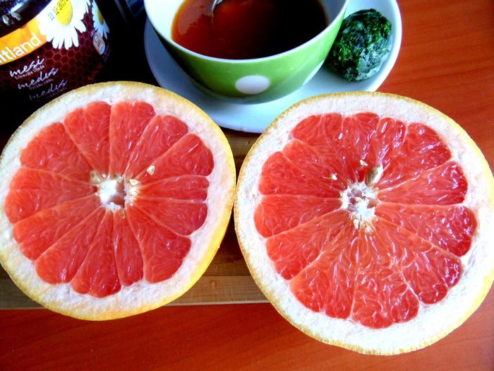 Из выжатого сока и отлила половину,но написала меньше,так как не все любят горчинку этого фрукта...Я же его обожаю и ем всю зиму и весну почти каждый день!