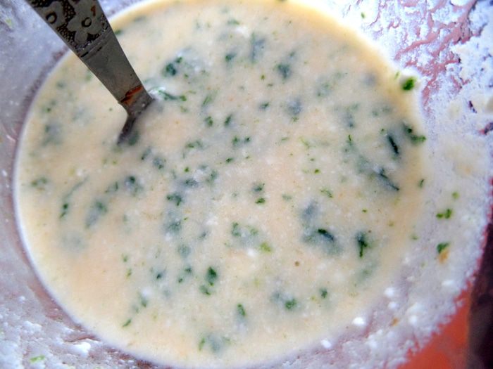 Можно и ложкой размешать,ведь шпинат уже измельчён!