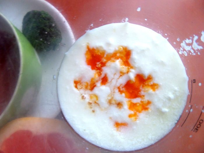 Наливаем в ёмкость для взбивания кефир или простоквашу,как у меня,вливаем сироп.