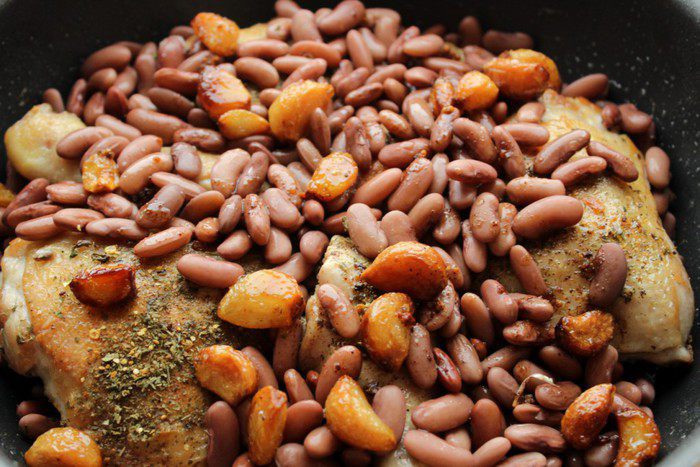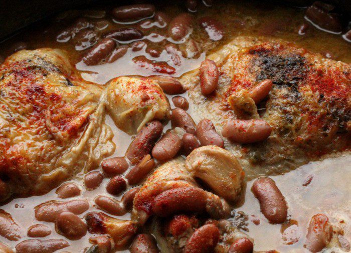 Влить два стакана воды, закрыть крышкой, довести до кипения, огонь уменьшить и готовить примерно 1 час 20 минут. Курица должна стать мягкой, а фасоль слегка развариться. Посыпать рагу паприкой и досолить по вкусу, если это необходимо. Подавать горячим...
