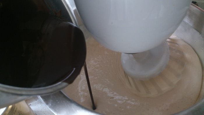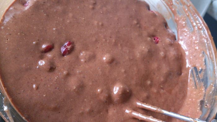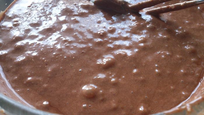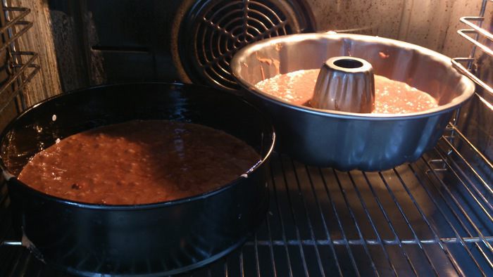 Можно испечь один большой торт в форме, диаметром 26-28 см. Я же взяла две формы 21 см. Смазать форму маслом. Я предпочитаю формы смазывать маслом за 15-20 минут для выпечки. Выложить тесто в форму и выпекать при 170 45-50 минут. Во время выпечки проверять - деревянная палочка должна быть почти сухая, т.е. не совсем.