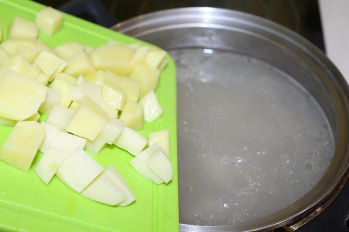 Дальше спустите нарезанный кубиками картофель, варите минут 10 — 15.