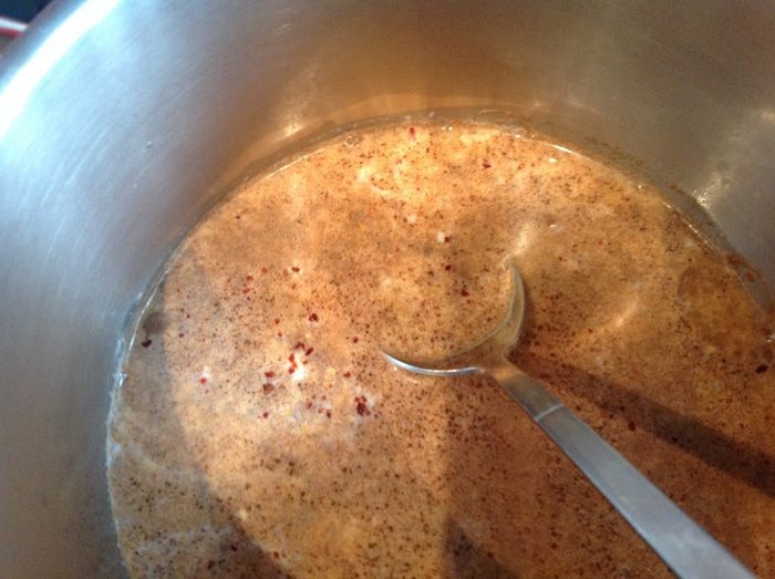 Молоко подогреть, но не кипятить... Добавить корицу, ванилин, какао, перец чили... а еще можно 1 ст л меда. Размешать.
