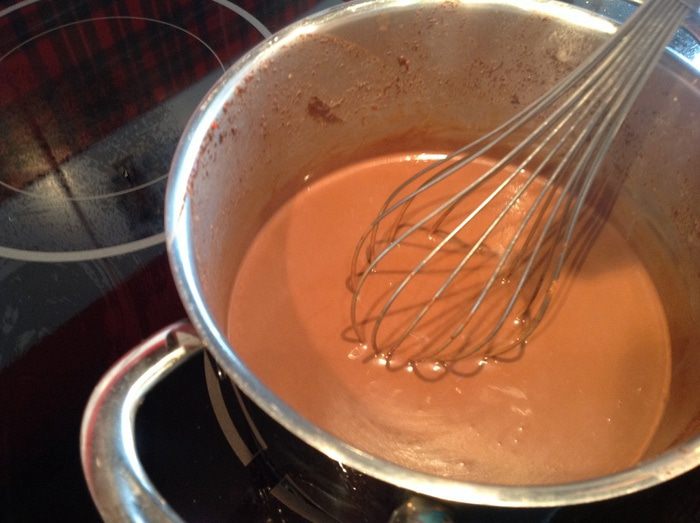 Все время помешивая добавить шоколад, и довести до готовности, я люблю густой, как пудинг, чтобы можно было есть ложечкой.