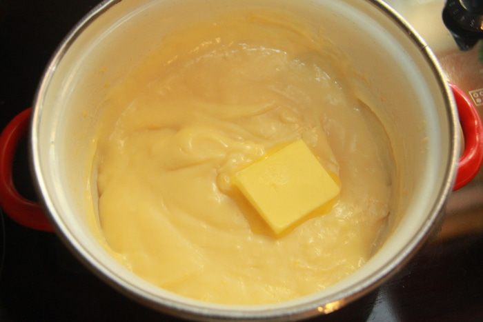В полученный заварной крем добавить масло.