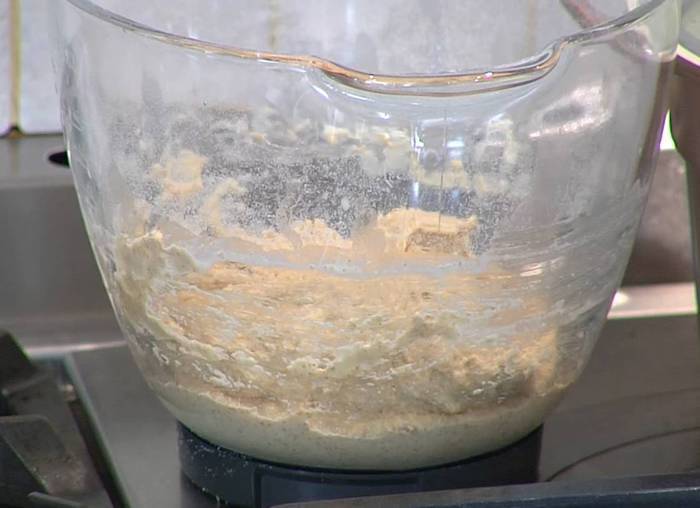 Чашу с тестом накрыть смоченным в горячей воде и отжатым полотенцем и оставить в теплом месте.