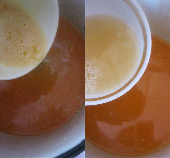 Желатин нагреть ( я делаю это в МВ), процедить. Добавить к горячему сиропу, размешать до растворения желатина.
