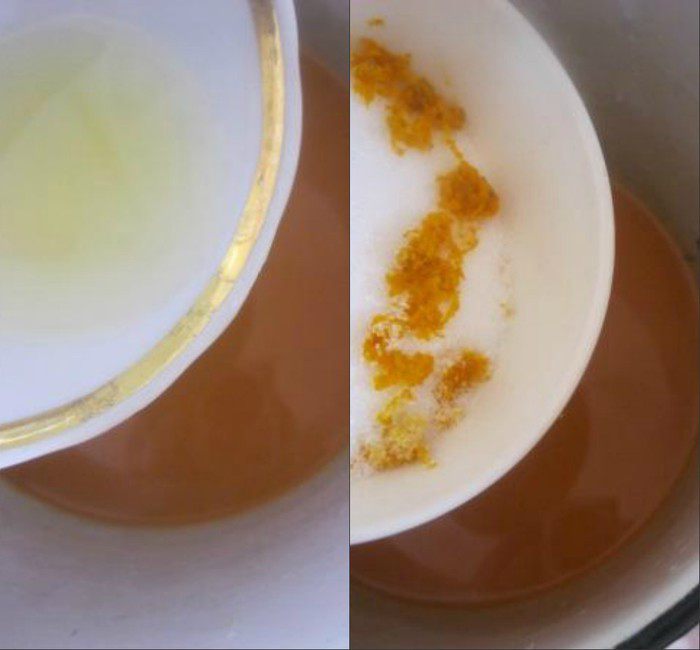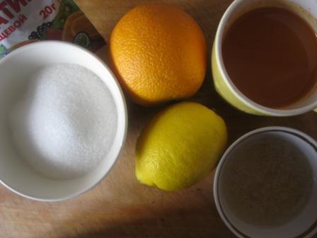 Добавить сок лимона, сахар и цедру апельсина и лимона.