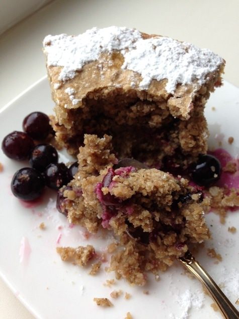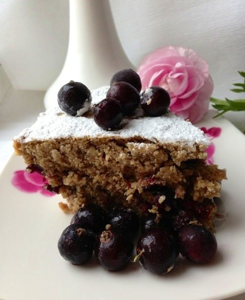 Постный овсяный пирог с халвой и черной смородиной