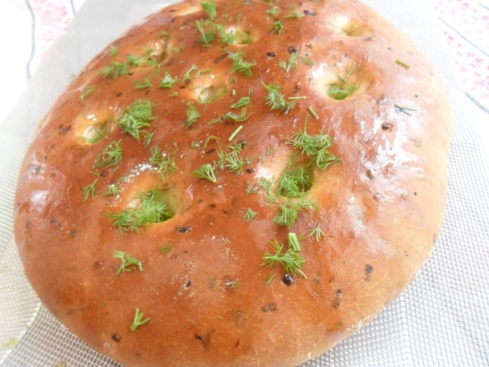 Отправить в разогретую до 200С духовку на 20 минут. Достаем, обильно поливаем оливковым маслом и присыпаем зеленью. У меня на этот раз укроп - очень вкусно с розмарином, но это уже другая история... А далее разламываем, макаем в оливковое масло, кушаем и думаем "еще кусочек, и еще кусочек, и самый последний кусочек"