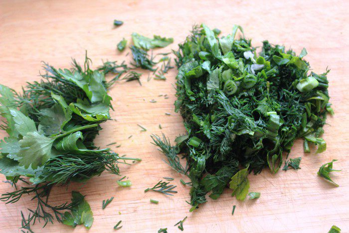 И другую зелень. Набор зелени можно регулировать по своему вкусу.