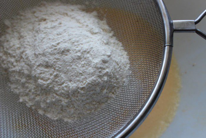 Перелить смесь в широкую миску, добавить просеянную с разрыхлителем муку, сметану и немного посолить. Быстро вымесить тесто, затянуть его пленкой и отправить в холодильник на 1 час. У меня ушло немного больше муки, примерно на 50-70 г...