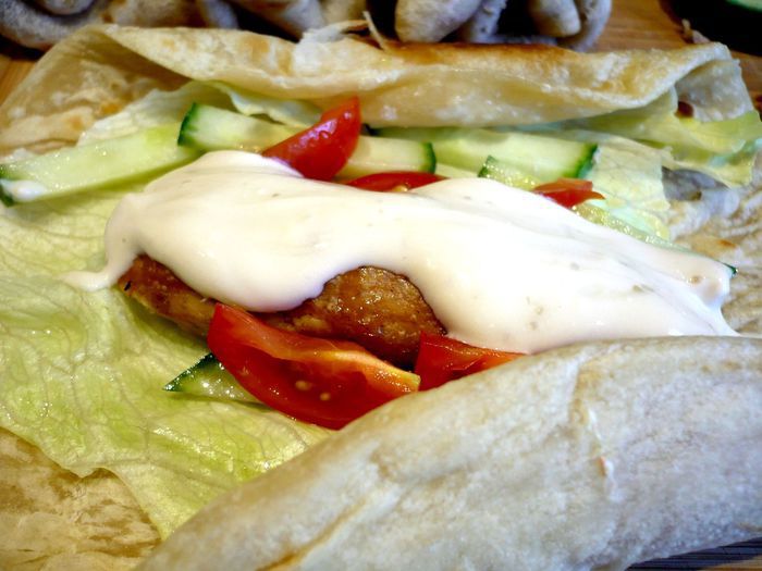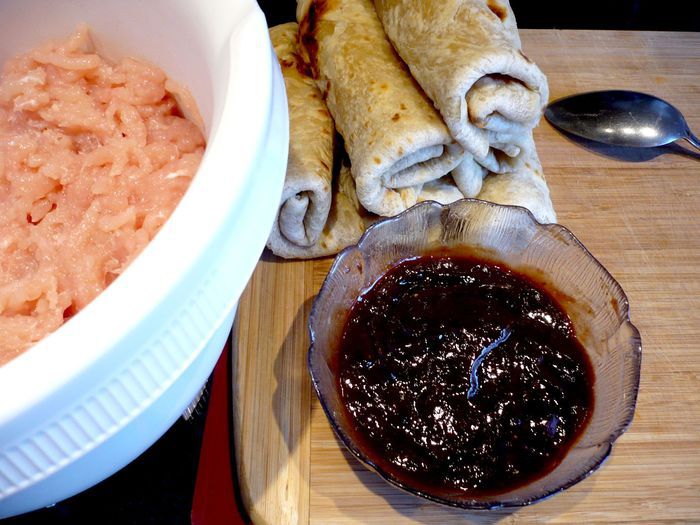 Тем временем делаем фарш из куриных грудок. Джем смешиваем с соком лимона, добавляем горчицу, соль и перец по вкусу. Перемешиваем. Добавляем в фарш крошку, джем, натертый на терке чеснок, соль и перец. Ставим в холод. На фото у меня уже можно увидеть лепешки, просто я готовила их еще до подготовки фарша, но та последовательность действий, которую я указываю сейчас, гораздо удобнее.