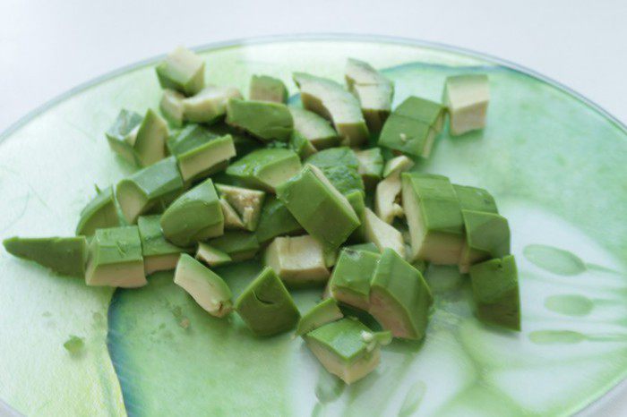 Из очищенного авокадо извлеките косточку, сбрызните мякоть соком лимона.