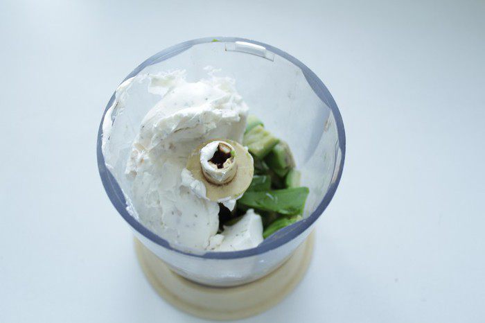 Добавьте творожный сыр и пюрируйте.