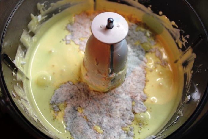 Затем ввести мучную смесь в 3 партии, каждый раз аккуратно перемешивая на минимальной скорости, не взбивая.