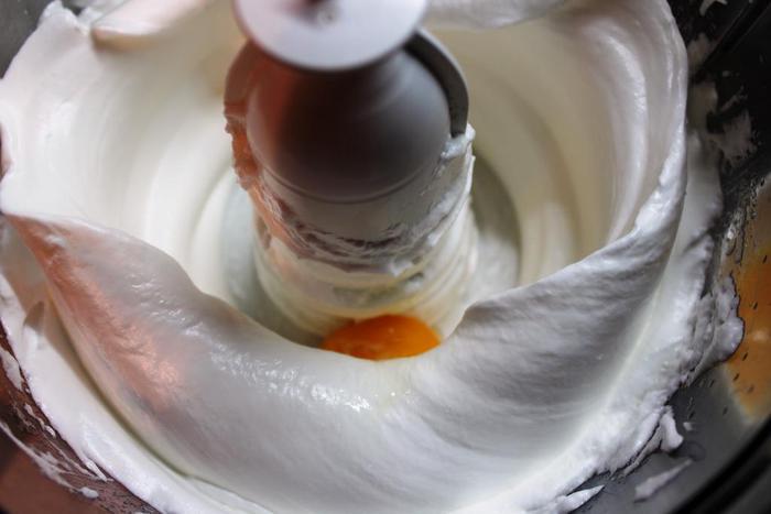 Взбить белки, постепенно добавить сахар и взбивать до устойчивой, глянцевой пены в течение нескольких минут.