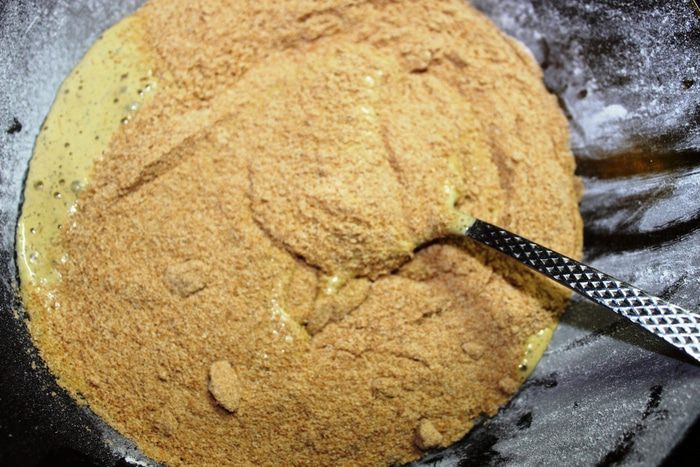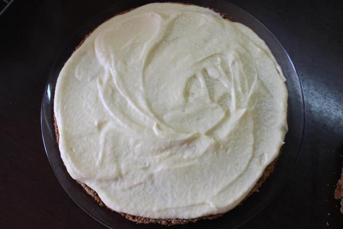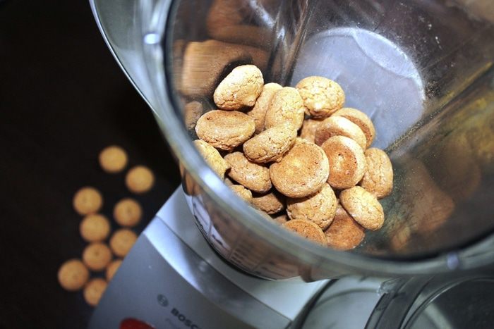 В последнюю очередь ложкой подмешать к смеси крошку печенья.