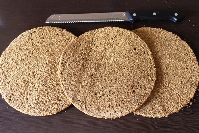 В оригинале торт шел с другим кремом, но я не рискнула добавлять в него сырые яйца и заменила заварным сметанным. Также хорошо держащим форму и не менее вкусным.