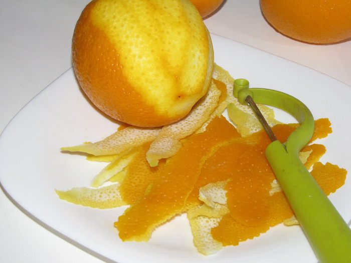 Цедру апельсинов залить холодной водой, довести до кипения и откинуть на дуршлаг. Повторить трижды! Это нужно для того, чтобы избавиться от лишней горечи.