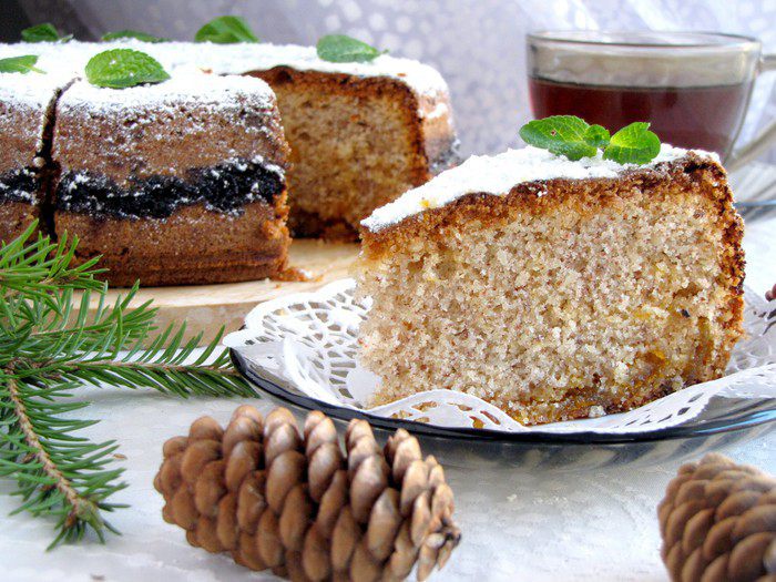 Готовый пирог посыпать сахарной пудрой.