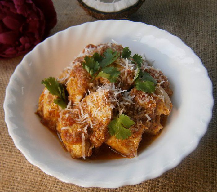 Перед подачей украсить кокосовой стружкой и зеленью кинзы. ПРИЯТНОГО АППЕТИТА!!!