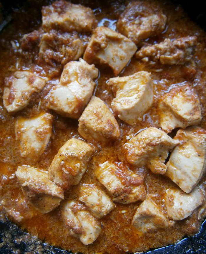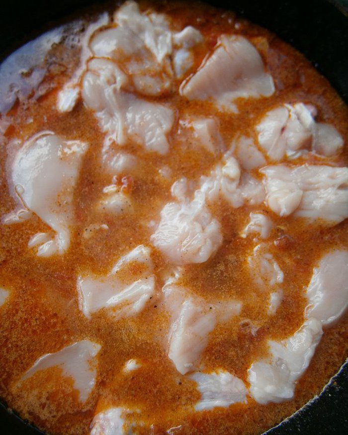 Добавить куриное филе, перемешать, накрыть крышкой.