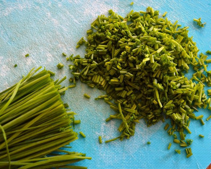 Салат нарезать тонкой соломкой. Переложить в миску.