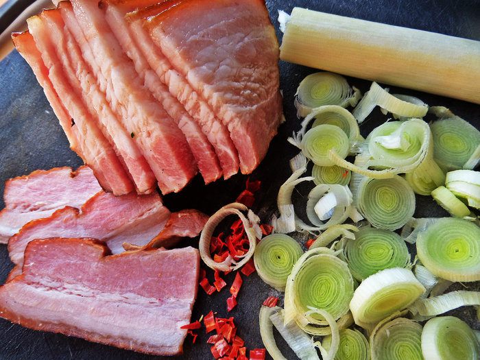 Бекон нарезать.