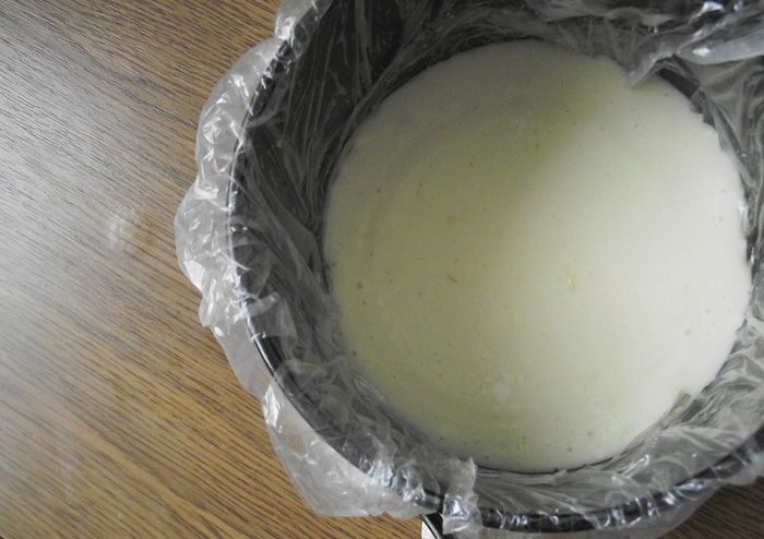 В это время взбить йогурт миксером,чем дольше мы взбиваем, тем более воздушным получается желе. Тоненькой струйкой влить теплый сироп и снова взбить до однородности.