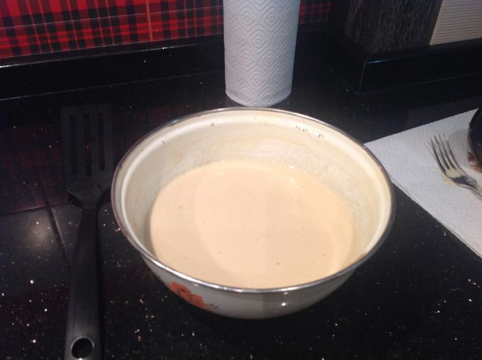 Яйца взбейте с солью и сахаром, добавьте половину кефира и муку, перемешайте чтобы не было комочков. Все время помешивая влейте по чуть-чуть оставшийся кефир, добавьте 1 ст л растительного масло.